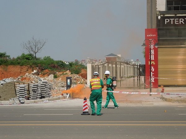 本次演練假想第三方在道路綜合改造施工過程中采用挖掘機(jī)進(jìn)行開挖取土,不慎將地下燃?xì)夤艿劳谄?,造成管道燃?xì)獯罅啃孤?,泄漏現(xiàn)場有火星出現(xiàn),引發(fā)燃?xì)庵鹗鹿省?SPAN style="BACKGROUND: white">公司在接到現(xiàn)場負(fù)責(zé)人員報警后,迅速啟動事故應(yīng)急處置預(yù)案,各救援小組在事故應(yīng)急指揮部的指示下,緊張而有序地開展應(yīng)急處置工作,整個演練過程各司其職、忙而有序:安全警戒、治安維護(hù)、火災(zāi)消除、管網(wǎng)搶修、燃?xì)鈴?fù)供,演練歷時30分鐘。
