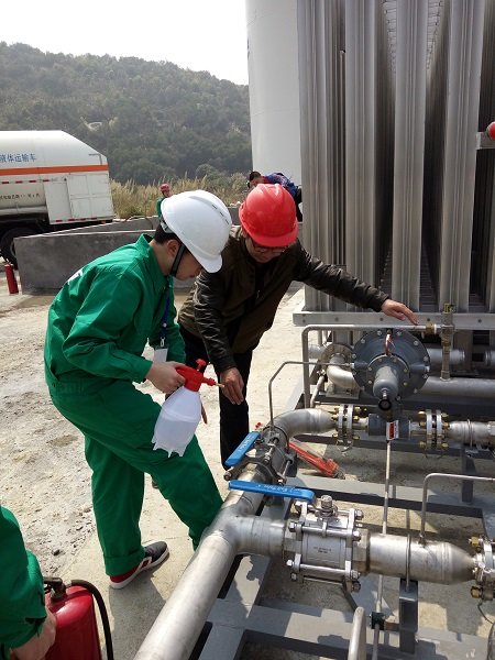 在接到進(jìn)液及管網(wǎng)置換的通知后,安全運(yùn)營部高度重視,不但提前介入及熟悉管網(wǎng)、站內(nèi)設(shè)施施工,且多次對(duì)各個(gè)閥門的控制情況實(shí)地查看,精心推敲并征求曠遠(yuǎn)能源技術(shù)和運(yùn)營相關(guān)人員的意見確認(rèn)實(shí)施步驟方案。在實(shí)施過程中,精心的安排確保了方案的順利進(jìn)行:從實(shí)施前的交底、管網(wǎng)走向認(rèn)知、注意事項(xiàng)等作了著重說明,到分工明確后,警戒排放,氮?dú)庵脫Q,進(jìn)液,管網(wǎng)置換檢測等各步驟的緊密進(jìn)行,終于在當(dāng)天中午12點(diǎn)20分置換完成,在日晶玻璃廠的大門口燃起了火紅的焰火,這是一個(gè)里程碑的標(biāo)志,也是新的征程。(通訊員 張進(jìn)華)