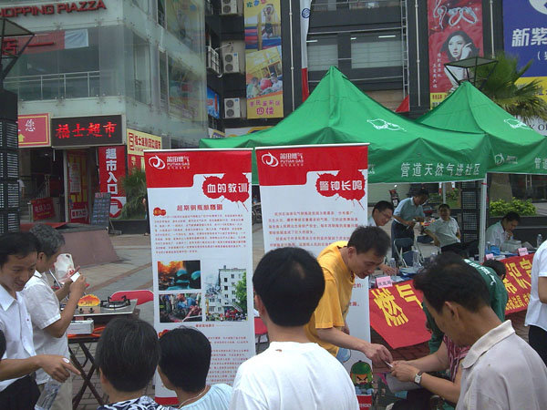 2009年6月25日,莆田燃?xì)狻鞍踩麄髟隆被顒?dòng)走進(jìn)社區(qū),于涵江大地香港城門口開(kāi)展安全用氣宣傳、普及活動(dòng)。