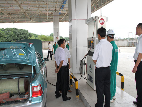 傅冬陽(yáng)副市長(zhǎng)一行檢查汽車加氣過(guò)程