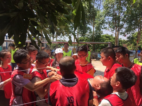 經(jīng)過短暫的午休后,團隊進入了第四個項目“同心鼓”,一人墜球,其他人握繩顛球,領(lǐng)先完成20個顛球的隊伍為勝。從一開始的手忙腳亂,在游戲過程中不斷取長補短,團結(jié)合作,到最后步驟一致,共同為了完成目標而努力。所有成員在團隊中找到自己的價值,發(fā)揮自己的作用,同時也學會聆聽他人,配合他人,關(guān)愛他人。